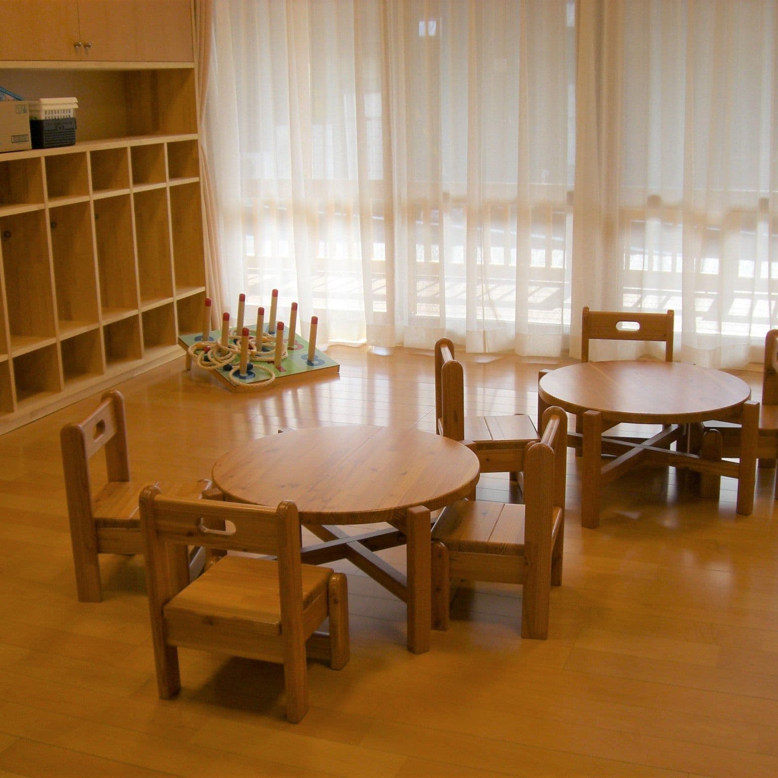初めて触れる机、椅子はやさしい木製家具を整備しました。自然素材の手触り香りを大切にします。